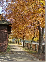 Kościółek schowany jest latem w zieleni, a jesienią w złocie i purpurze.