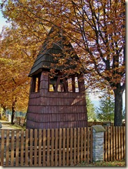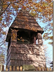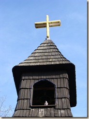 Podążając w kierunku Baraniej Góry nie sposób nie zauważyć dzwonnicy kościółka. Czasem przysiadają na niej ptaki, by odpocząć…