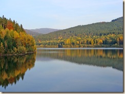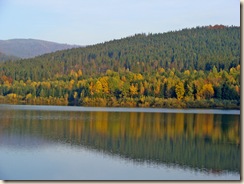 Otaczające tamę wzgórza, a raczej porastające je drzewa ukazują nam pełną paletę barw polskiej złotej jesieni.