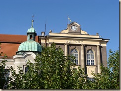 W jedną z październikowych niedziel, korzystając z pięknej pogody, wybrałam się do Pszczyny. Nie zważając na fakt, iż czeka mnie trudne zadanie oczywiście zabrałam z sobą aparat fotograficzny. Rzeczywiście moje przewidywania okazały się jak najbardziej trafne. Już ilość samochodów na parkingu utwierdziła mnie w przekonaniu, że nie tylko ja postanowiłam spędzić to jesienne popołudnie akurat w tym miejscu. W miarę zbliżania się do rynku, a później parku, ilość spacerowiczów szybko rosła. Niestety, musiałam się z tym pogodzić i potraktować to jako nie lada wyzwanie. Chcąc sfotografować ratusz, uniosłam nieco obiektyw aparatu i oto co zobaczyłam.