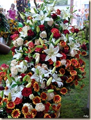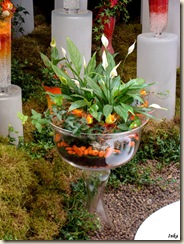Teraz słów kilka o samej wystawie. Wchodząc na jej teren znalazłam się jakby w innym świecie. Dokoła piękne kolorowe kwiaty, w wielu odmianach, których zapach zmieniał się w zależności od miejsca, w którym akurat się znajdowałam. Najintensywniej pachniały lilie i frezje. Ale zacznijmy od początku. Wchodzących witała okazała wiklinowa brama, w którą wplecione były kwiaty gloriozy i anturium.