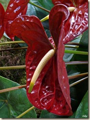 Oprócz róż w jednolitej grupie pokazane zostały także kwiaty anturium. Ich kształt sprawia, że są bardzo dekoracyjne i pięknie prezentują się bez żadnych dodatków.