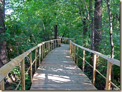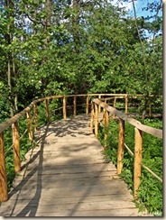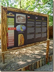 Idąc drewnianym pomostem, co chwila po jego lewej lub prawej stronie dostrzegamy tablice, zawierajace podstawowe informacje o mijanych dinozaurach.