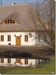 Mnie zachwyciło piękne odbicie budynku oberży w lustrze wody.