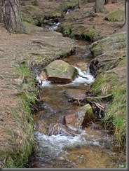 drogę przeciął mi strumyczek. Cichutko szemrząc płynął sobie wąską strużką, omijając porośnięte mchem kamienie.