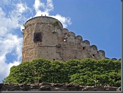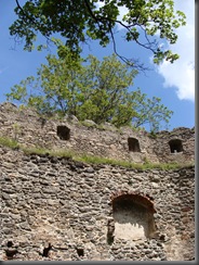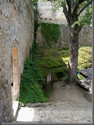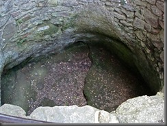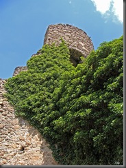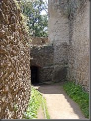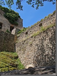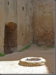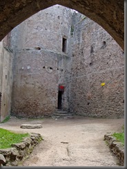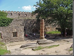 Oto dziedziniec zamku górnego, który wzniesiono tutaj w XIV w. Widać wlot do jednej z trzech cystern na wodę deszczową, o których wspominałam wcześniej.gdyż z przyczyn naturalnych nie było możliwe zbudowanie tutaj studni. Były one głębokie na 10 m. Dziedziniec jest niewielki, ale to tutaj też znajduje się potężna, cylindryczna wieża, której fragment widać na zdjęciu.