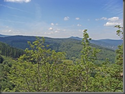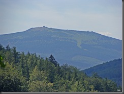 Najpierw chciałam spojrzeć, jaki widok rozciąga się z tego miejsca. Okazało się, że bardzo rozległy. Jak okiem sięgnąć – zielono. Tutaj widzimy Szrenicę.