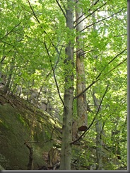 Tylko od czasu do czasu mijali mnie bardziej sprawni, czy też bardziej niecierpliwi piechurzy. Wtedy przypominały mi się tatrzańskie szlaki, na których prawie non stop przemieszczają się wycieczki dzieci i młodzieży. Dlatego też tam trudno o takie doznania jak tutaj. Porośnięte mchem skały i powalone pnie od czasu do czasu podświetlały przezierające przez listowie słoneczne promyki.