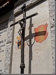 Zainteresowała mnie kolejna brama. Okazało się, że za nią w miejscu, gdzie kiedyś znajdował się budynek właściciela zamku i sala rycerska, obecnie jest miejsce upamiętniające żołnierzy poległych w I wojnie światowej, pochodzących z tych terenów.