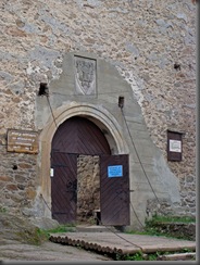 Wreszcie, z biletem w ręku mogłam przekroczyć bramę główną z mostem zwodzonym, pod którym znajdował się suchy rów 4-metrowej głębokości, gdyż na fosę nie pozwalały warunki naturalne tego miejsca. Nad bramą widnieje renesansowy portal piaskowcowy z wydrapaną dalą 1647 r. Przedstawia on godło piastowskie, które jest kopią tarczy Bolka I.