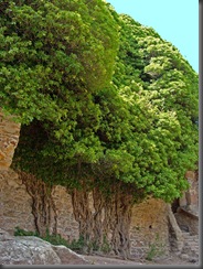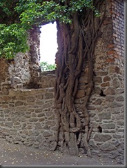 W pobliżu otworów okiennych bujnie rozrosły się pnącza, pełniąc rolę jakby naturalnych zasłon.