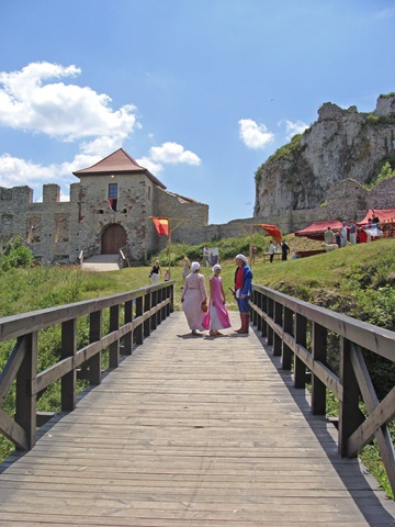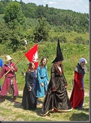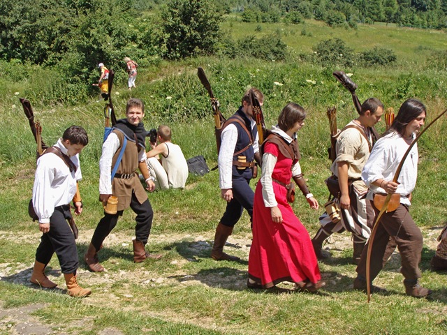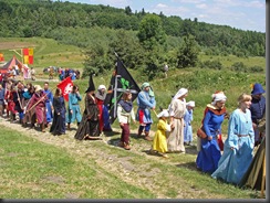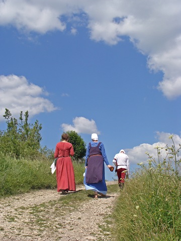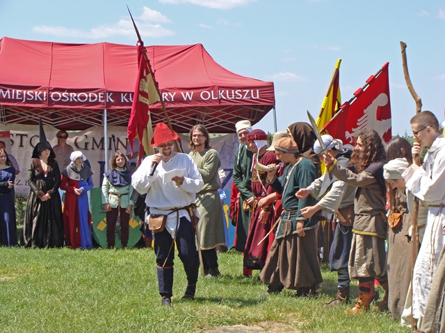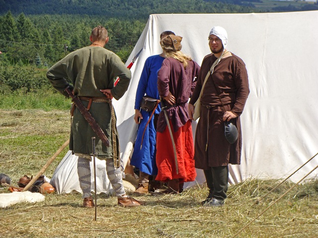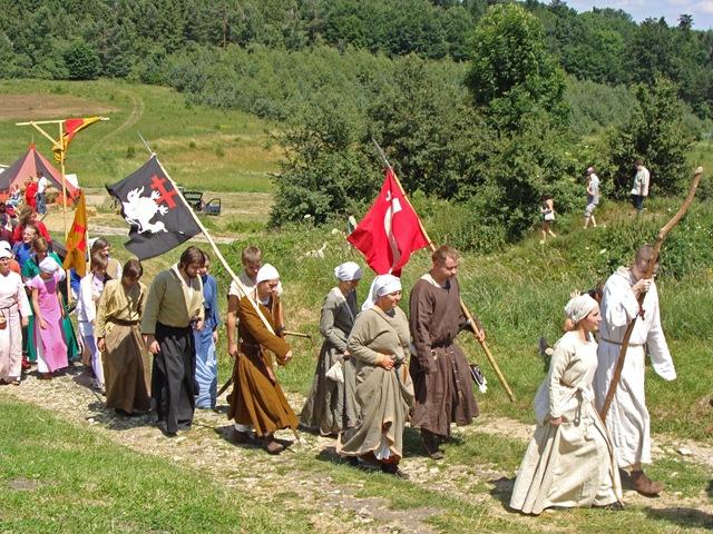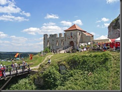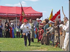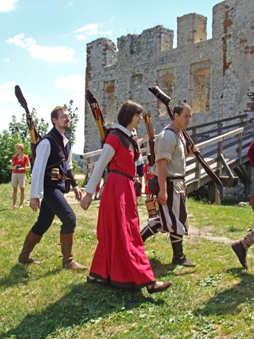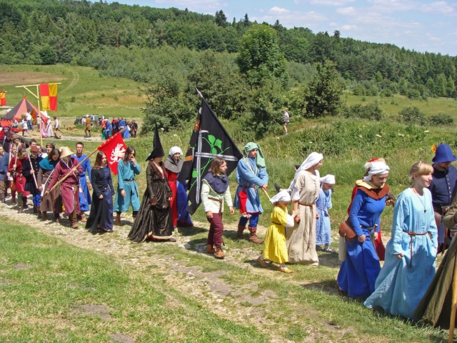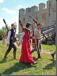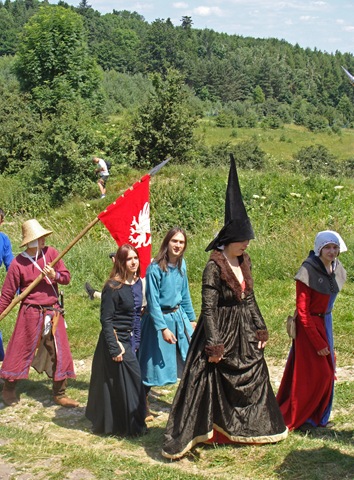 Wybierając się na zamek nie wiedziałam, jaka spotka mnie tam niespodzianka. Idąc polną ścieżką dokoła wzgórza, by zobaczyć warownię od północnej strony zauważyłam, jak już wspomniałam w poprzedniej części, niecodziennie ubranych ludzi podążających w tym samym co i ja kierunku.