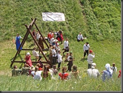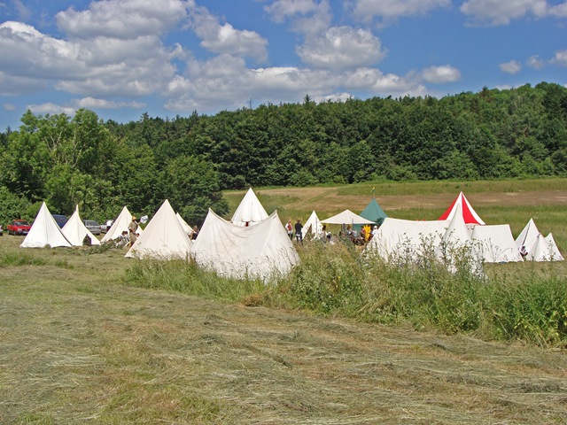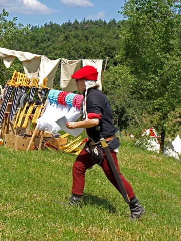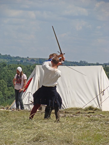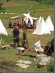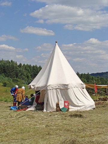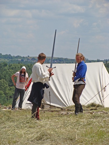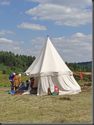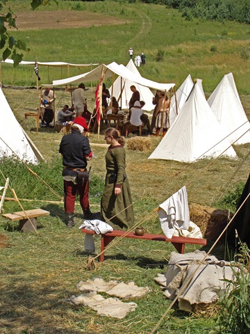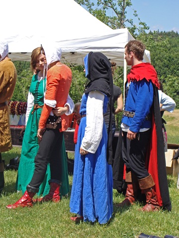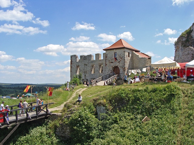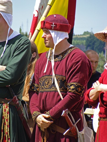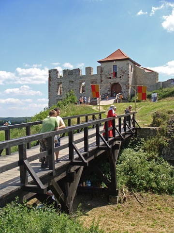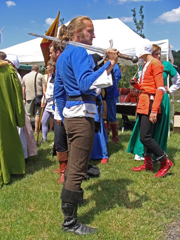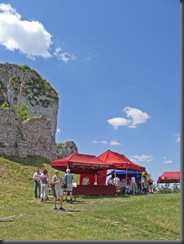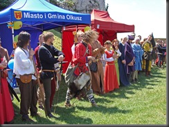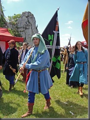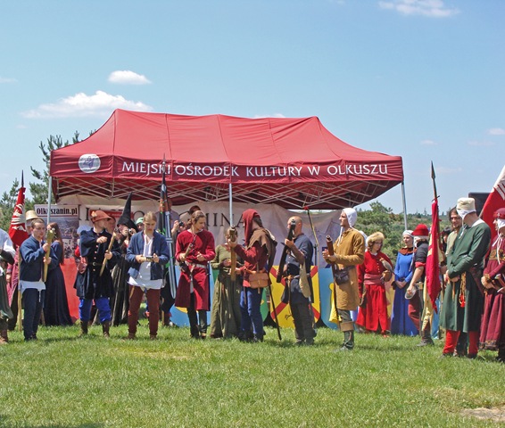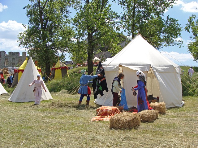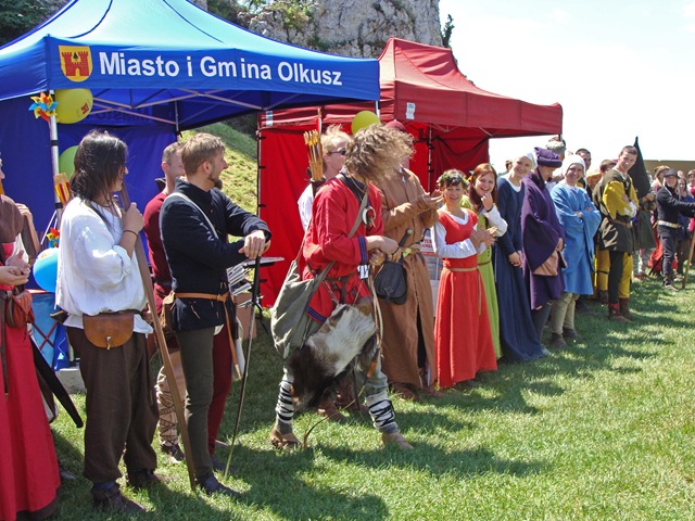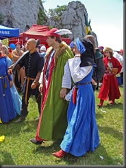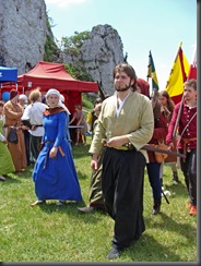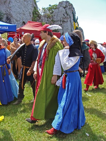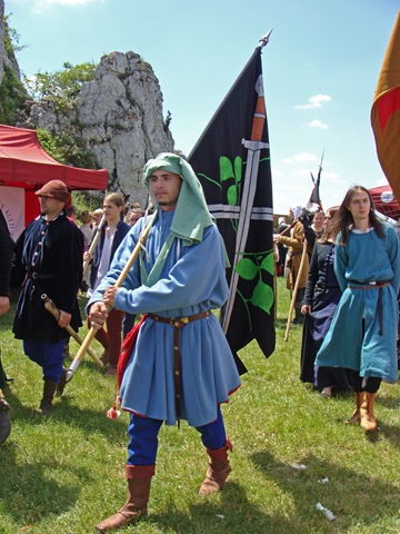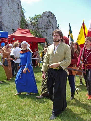Na dwie godziny przed rozpoczęciem turnieju turystów nie było jeszcze tak wielu, więc dokoła przeważali uczestnicy czekającego nas widowiska rycerskiego. Zawładnęli oni całkowicie rabsztyńskim wzgórzem.