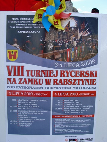 Niestety nie mogłam obejrzeć dalszych zmagań rycerskich. Mam nadzieję, że wybaczycie mi, ale myślę, że ten materiał, który zaprezentowałam, przybliżył Wam choć trochę klimat tej imprezy i czasów, których dotyczyła. Ja czułam się wyśmienicie w samym środku “tych” czasów. Chyba zauważyliście, śledząc moje podróże, że doskonale pasuje mi klimat zamkowych murów, towarzystwo rycerzy i ich dam. Te czasy miały w sobie sporą dozę romantyzmu, który jest mi bardzo bliski. Zdaję sobie sprawę z wszelkich niedogodności, jakie towarzyszyły ówczesnemu codziennemu życiu, jednak mimo wszystko chciałabym wsiąść do magicznej machiny i przenieść się w czasie choć na jeden dzień …(oczywiście wstecz) 😉