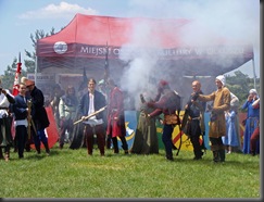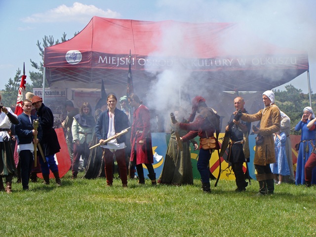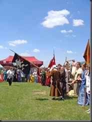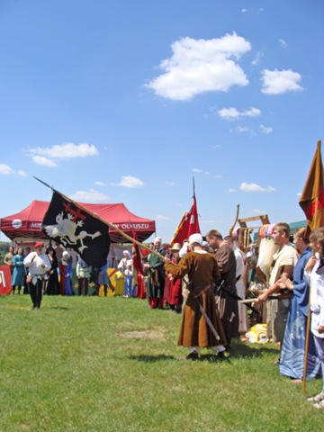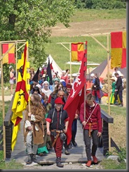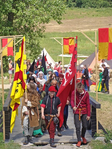 W samo południe rozpoczęła się parada rycerska. Wszyscy uczestnicy przemaszerowali z obozowiska przez most na placyk przy zamkowych murach. Było co podziwiać. Najbardziej spontanicznie reagowały dzieci, gdyż wiele z nich prawdopodobnie pierwszy raz widziało taką inscenizację.