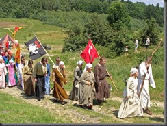 Każde bractwo podążało za swoją chorągwią, ustawiając się półkolem do powitania.
