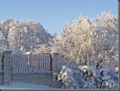 Przyglądałam się okrytym białą, puchową pierzynką roślinom. Jedne dumnie prezentowały swoją śnieżną czapeczkę,