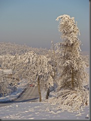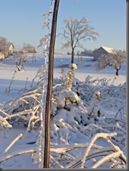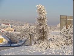 Z każdym kilometrem zima coraz bardziej odsłaniała swoje prawdziwe oblicze. Zdawałam sobie sprawę z faktu, że ludzie na tym terenie byli już drugi tydzień bez prądu, a zima nie odpuszczała. Tutaj widać obwisłe, pokryte lodem i śniegiem przewody.
