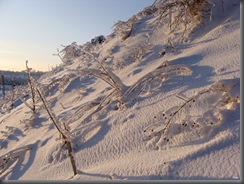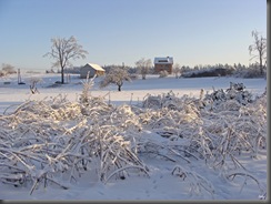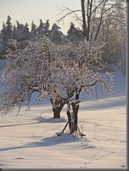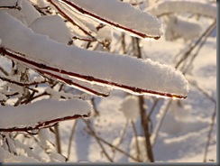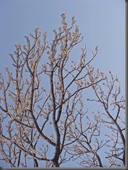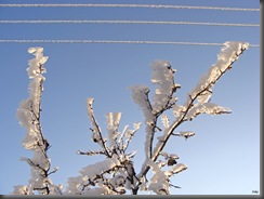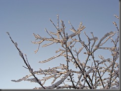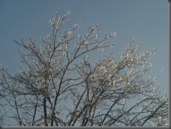 Oblodzone gałązki chyliły się ku słońcu z nadzieją, że uwolni je z tej zimowej okrywy.
