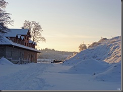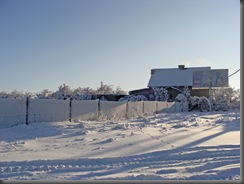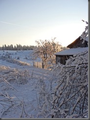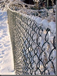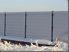 Chwila wahania, czy najpierw swoją uwagę poświęcić pięknemu zimowemu krajobrazowi, z jego detalami, czy też ruinom zamku. Wybrałam opcję pierwszą. Rozejrzałam się dookoła. Wszędzie śnieg i lód. Szłam drogą w kierunku najbliższego gospodarstwa, potem ścieżką wzdłuż pokrytego lodem płotu.