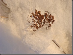 Jednak lód nieczuły był na promienie styczniowego słonka i ani myślał ustąpić. Gałązki, uśpione życie, wyglądały niczym zatopione w krysztale.