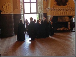 Chodząc po zamku zauważyłam grupki młodych ludzi, ubranych w długie czarne peleryny.
