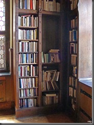 Stąd już tylko krok do biblioteki, do której weszliśmy z galerii wewnętrznej tajnym przejściem, które ukryte jest za tym ruchomym regałem z książkami.