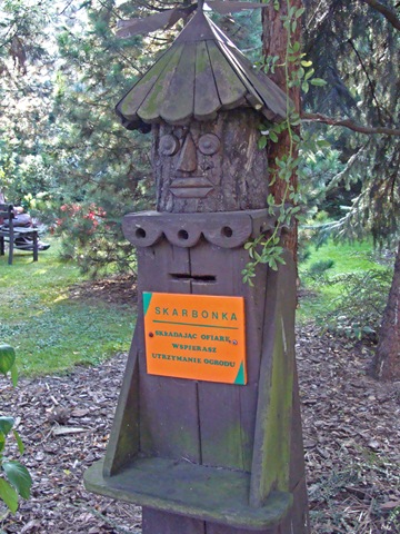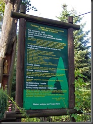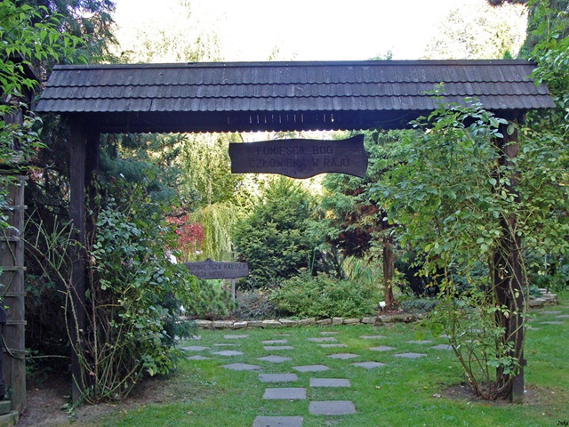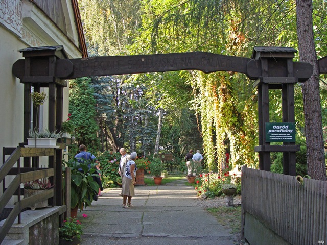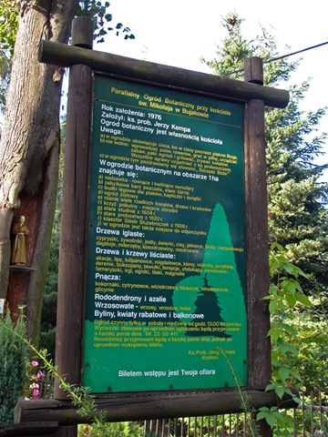 Przejdźmy do ogrodu. Rozciąga się on na powierzchni ok. 1 ha. Dzieli ją z probostwem i klasztorem Sióstr Służebniczek. Wszystkie podstawowe informacje o ogrodzie znajdziemy na tablicy przy wejściu. Teraz zapraszam już na spacer po ogrodzie…