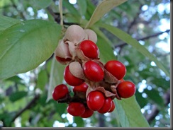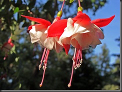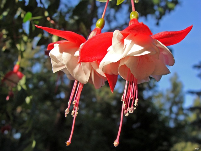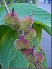 Na tle zieleni swe oryginalne kształty i barwy prezentują kwiaty.