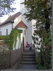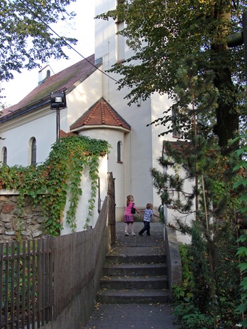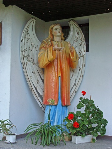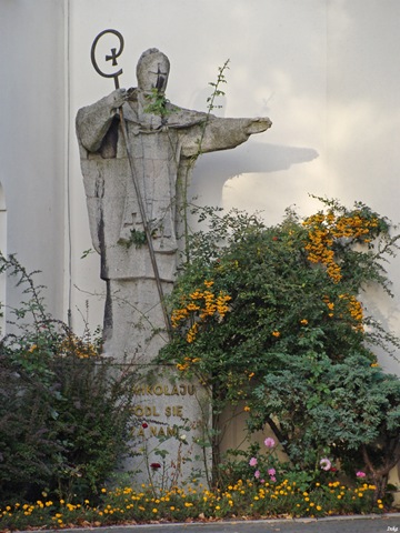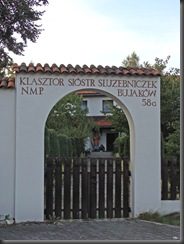 Stąd tylko dwa kroki do Domu Katechetycznego i klasztoru Sióstr Służebniczek. Na progu wita nas anioł…