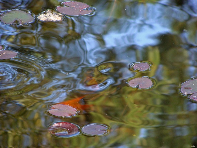 Lubię przyglądać się powierzchni wody, obrazom, które tworzy jej zawirowanie, gdy obok pozornie nieruchomego liścia przepływa kolorowa rybka.