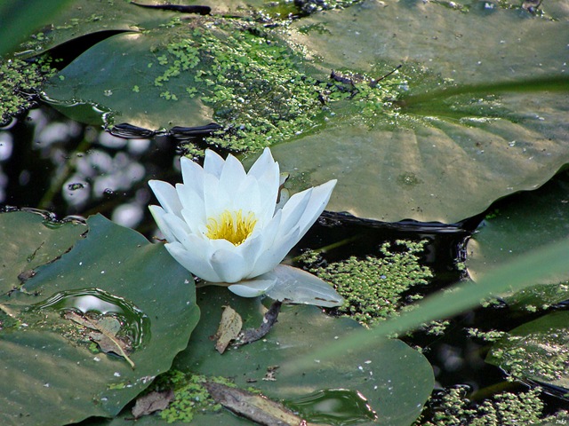 Sadzawka szczególnie okazale prezentuje się, gdy zakwitają nenufary.